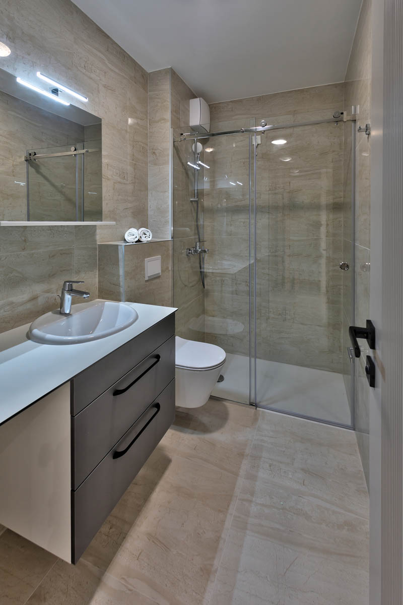 Luxuriously furnished apartments with balconies and sea views have air conditioning, cable TV, wireless alarm system, WiFi, a fully equipped kitchen and bathroom.