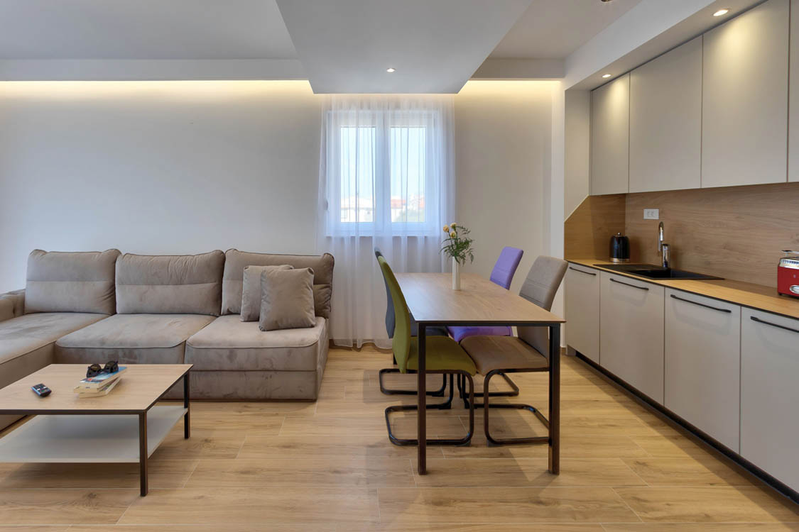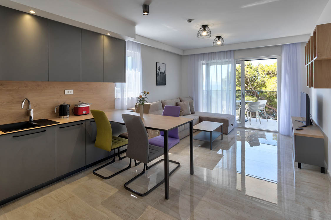 The green-blue color is certainly an invitation for everyone who wants to enjoy their summer vacation, and for a complete atmosphere, there are the luxurious apartments of Amara Promajna on the Makarska Riviera, located just a few steps from the beach. The apartments are located 20 minutes from the center of Makarska, and the nearest Split Airport is only 90 km away. Choose your ideal apartment and let the real Mediterranean vacation begin exactly as you imagined.